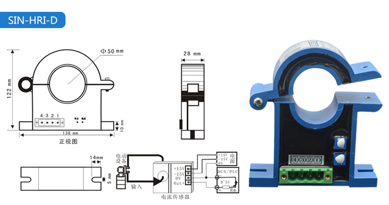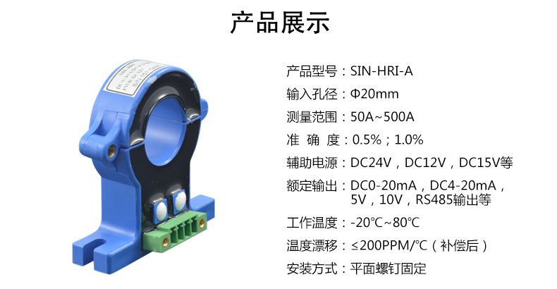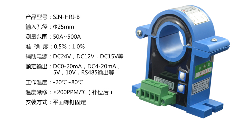電流變送器可以直接將被測主回路交流電流或者直流電流轉換成按線性比例輸出的DC4~20mA(通過250Ω 電阻轉換DC 1~5V或通過500Ω電阻