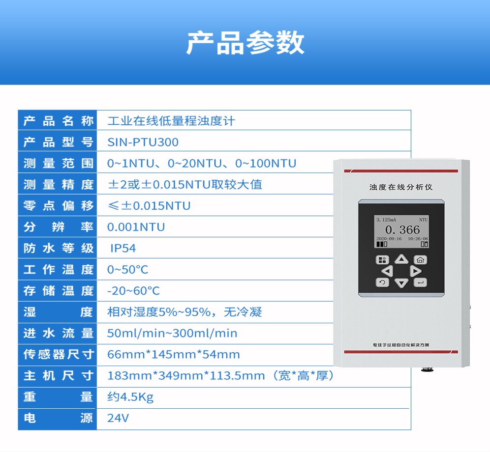 聯測_SIN-PTU300三個量程段規格,分別為0-1NTU量程段,0-20NTU量程段,0-100NTU量程段